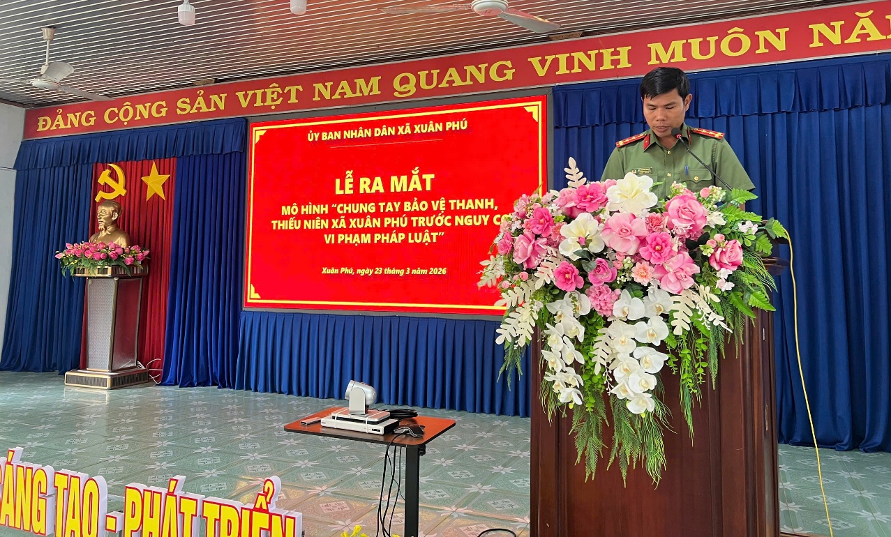 Sáng ngày 23/3/2026, Công an xã Xuân Phú tham mưu UBND xã tổ chức Lễ ra mắt mô hình trong phong trào bảo vệ an ninh Tổ quốc mang tên “chung tay bảo vệ thanh, thiếu niên xã Xuân Phú trước nguy cơ vi phạm pháp luật”. Lễ ra mắt có sự tham dự của đồng chí Nguyễn Việt Hoài – Phó Bí thư thường trực Đảng ủy xã, đồng chí Nguyễn Văn Linh – Phó Bí thư Đảng ủy, Chủ tịch UBND xã Xuân Phú cùng đại diện các lãnh đạo UBMTTQVN xã, các tổ chức đoàn thể, các cơ quan chuyên môn UBND xã, Bí thư, Trưởng ban nhân dân các ấp và Ban Giám hiệu các trường THCS trên địa bàn.